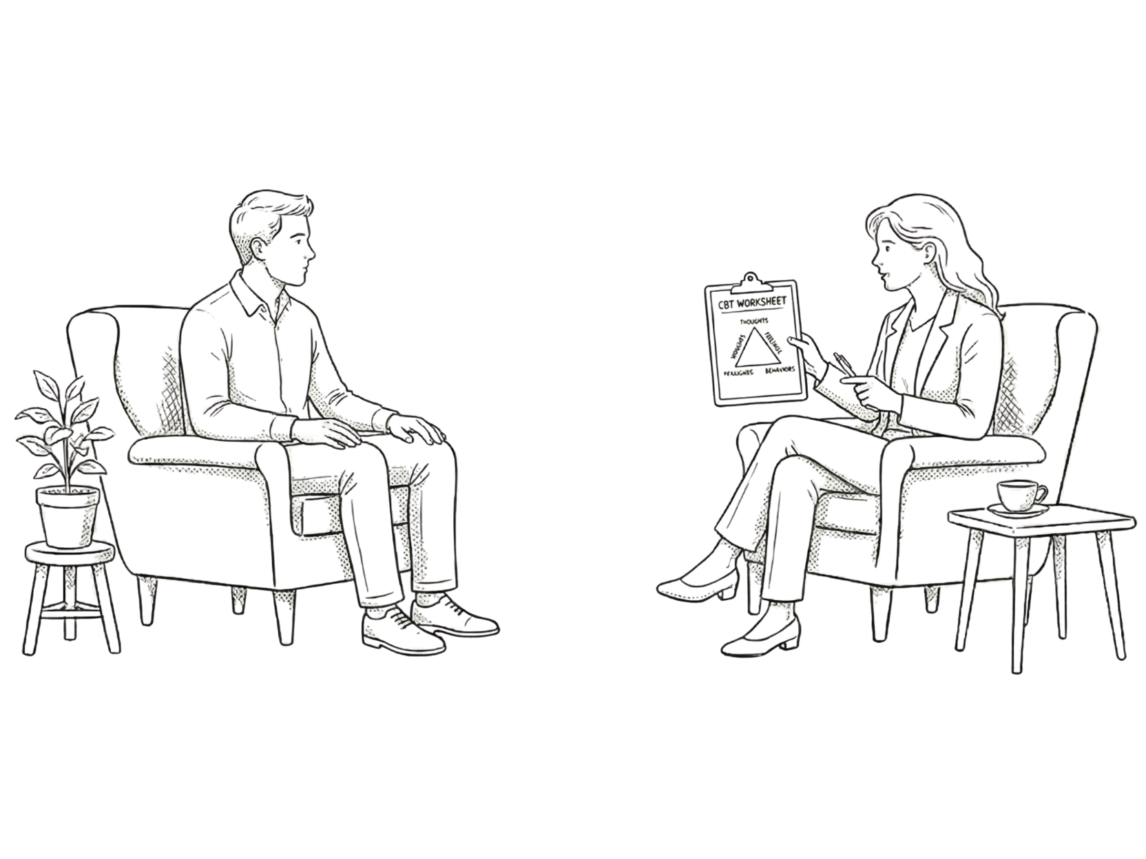 Change your thoughts, change your life. A structured, practical therapy that helps you identify negative thinking patterns and replace them with healthier ones.